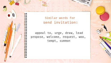 Send Invitation Synonyms - What's the definition of send invitation in thesaurus? What's the definition of sending invitation in thesaurus? Synonyms and antonyms of invitation in english. Need synonyms for send invitation? Click on any word or.